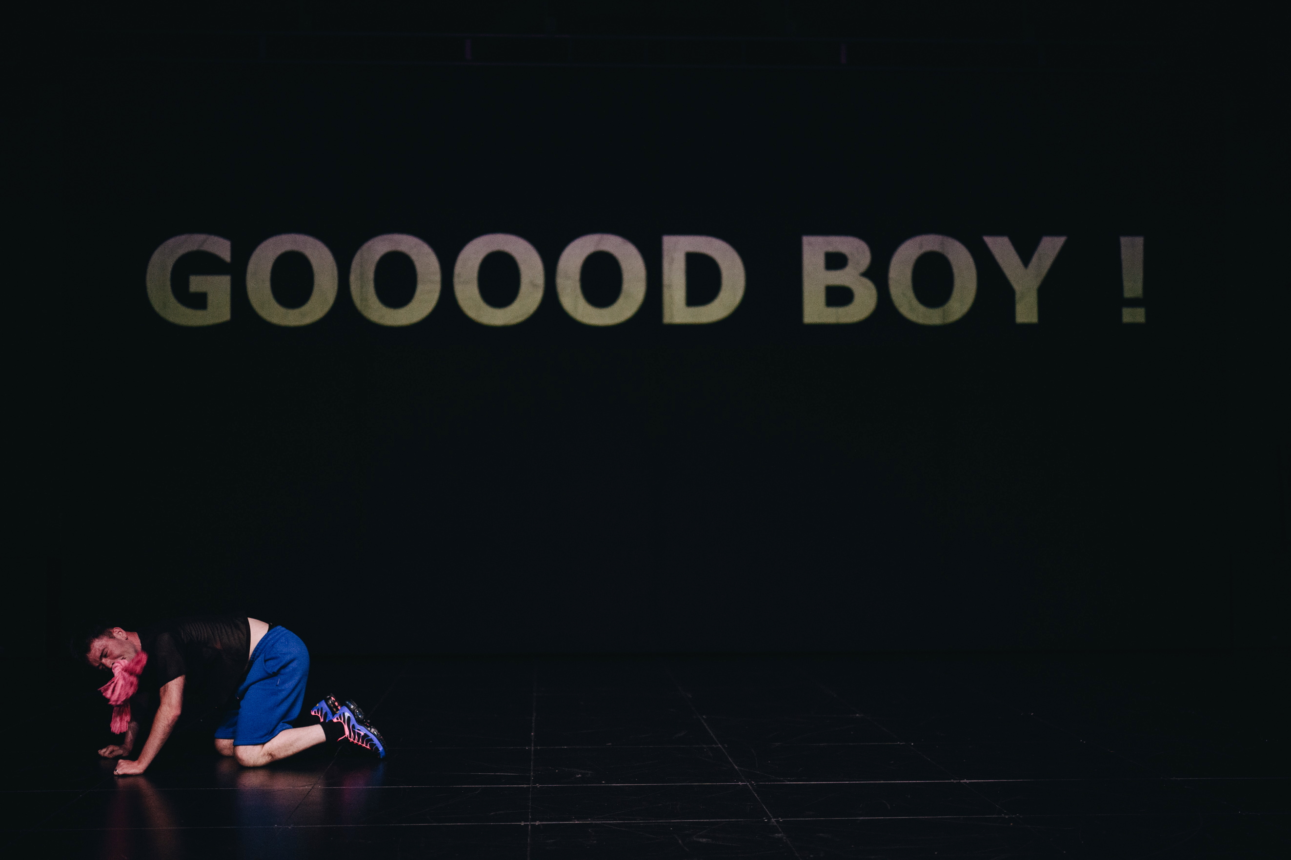 PUPPY-PLAY est une performance d’agility dans laquelle Dylan Poletti est prêt à tout pour incarner le désir de sa metteure en scène, Nina Negri.